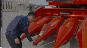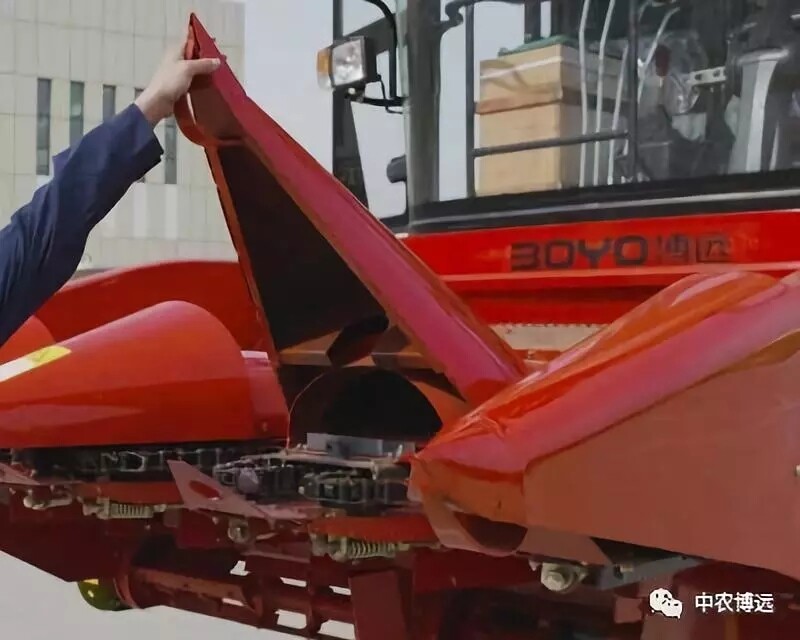 以目前主流技术来看,玉米收获机生产企业为了提高玉米收获机收获倒伏作物的能力,会延长割台分禾器,降低割台离地距离,甚至一些企业会在割台加装边绞龙和卷轴。这样,玉米收获机收获倒伏作物的能力大大提高。其中,中农博远4YZ系列玉米收获机的割台就采用了这样的技术。