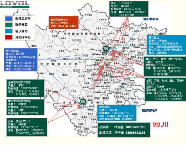 据小沃了解到,云南、贵州、四川、重庆为三夏服务第一站,雷沃已将配件、服务车辆及人员已全部准备到位,并在四川建立2个雷沃驿站(后期持续建立),投放配件流动车、成立分指挥中心,并为此处作业的机手朋友们开启多种报修渠道。