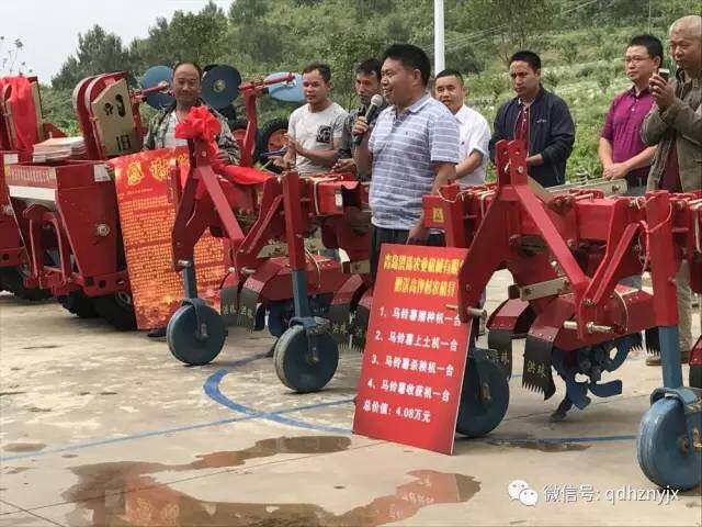 在此次会议中,青岛洪珠农机作为全国最大的马铃薯机械生产厂家,无偿捐赠从种植到收获的整套马铃薯机械,为加快现代农业发展,主推精准扶贫工作贡献一点自己的力量,洪珠农机总经理吴洪珠参加赠机仪式并发表讲话。