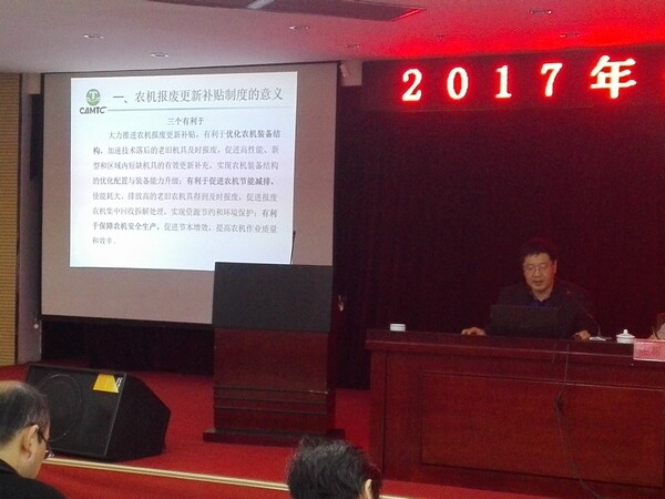 农业部农机试验鉴定总站副处长田金明同志和省农机局质量管理处副处长吴昭雄同志分别就农机报废更新补贴政策的形势和程序做了讲解。谷城县金天地公司、南漳县农机局和枣阳市农机监理站做经验交流。