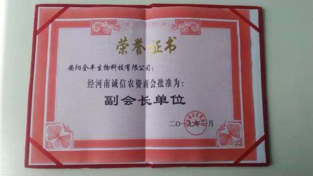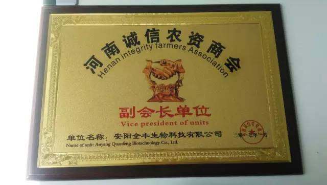3月31号,河南农资诚信商会为安阳全丰颁发诚信单位牌匾和荣誉证书。安阳全丰公司副总张晓林先生担任河南诚信商会副会长。