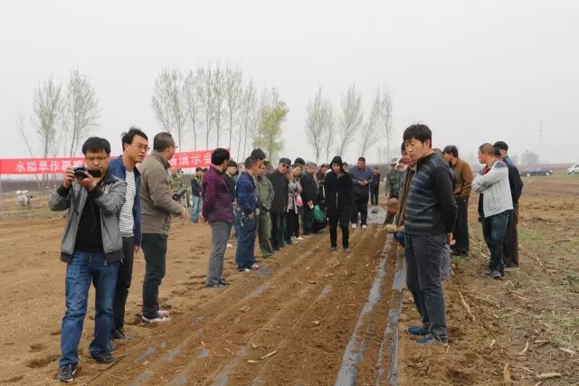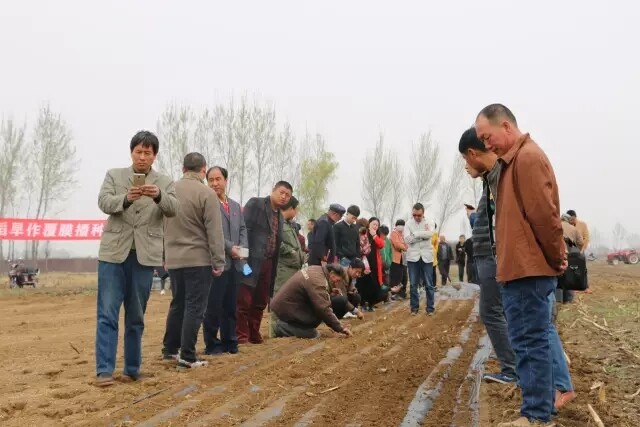 4月7日,由遵化市全鑫农机服务专业合作社、遵化市团瓢庄乡供销合作社、沈阳大作社农业有限公司共同举办的水稻旱作覆膜播种高产技术现场演示交流会于遵化圆满举行,包括唐山市辖各县区农业推广站领导、种植大户、合作社等100余人观摩本次演示会。