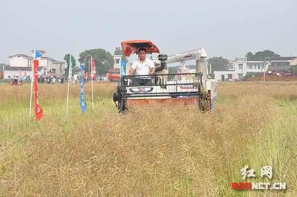 10日上午,全体与会代表在宁乡县坝塘镇清何村犋辚农机合作社现场观摩了油菜机收作业现场,包括油菜联合收割、浅耕开沟直播、机插秧同步施肥、无人植保等机械化作业。随后在坝塘镇人民政府召开了现场会议,会议由省农机局党组成员、总工程师汤绍武主持,宁乡县人民政府副县长陈德奇致辞,宁乡县农机局、慈利县农机局、溆浦万友农机合作社做了工作经验交流,省局科教处回顾了前阶段油菜生产全程机械化技术推广工作并就下一步工作进行了重点布置。
