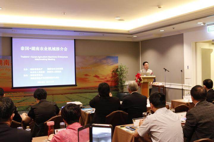 5月18日,湖南省商务厅联合湖南省农业机械局,永州市人民政府、娄底市政府以及十余家湖南优质农机企业在曼谷香格里拉举办“泰国-湖南农业机械推介会”。泰国农业部、商业部、国家粮食局以及80余家中泰农机企业和厂商参加了本次会议。会上主办方就湖南商情、农机情况以及湖南农机企业的优势做了详细介绍。