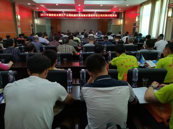 7月25日,湖南省水稻生产全程机械化现场演示暨秸秆综合利用研讨培训会在涟源市召开,省农委党组成员、省农机局局长王罗方,省农机局党组成员、总工程师汤绍武,省农机化技术推广站站长王洪明,娄底市农机局局长付凯军,涟源市人民政府副市长邓文旦、易志亮等领导,及14个市州农机局的分管领导、农机推广站站长,2016年、2017年秸秆还田项目县(市区)农机局分管领导、农机推广站站长等100余人参加会议。