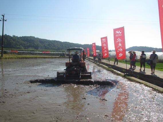 上午,与会人员首先来到涟源市金鹏农机专业合作社观摩水稻生产全程机械化现场演示。气势恢弘的全程机械化双抢场面立即吸引着大家的目光,只见一台台收割机在稻田里匀速前进,所到之处稻谷进仓,有的还将秸秆直接粉碎还田;秸秆捡拾打捆机在刚收割的稻田里穿梭,秸秆就被整理打包成一捆捆方方正正的秸秆包;拖拉机和履带式旋耕机过后,刚才还满脸胡渣的稻田被平整得光滑如镜;还有那高速插秧机、植保无人机、谷物烘干设备、生物质制肥机等先进农业机械竞相放彩,让观摩者大开眼界,流连忘返。
