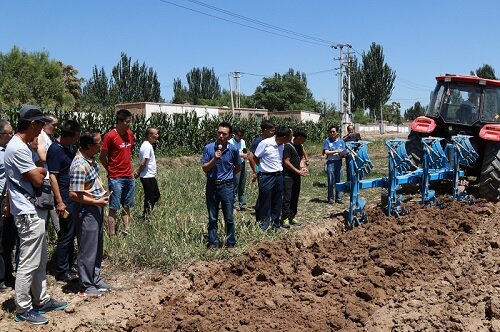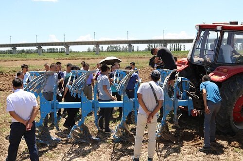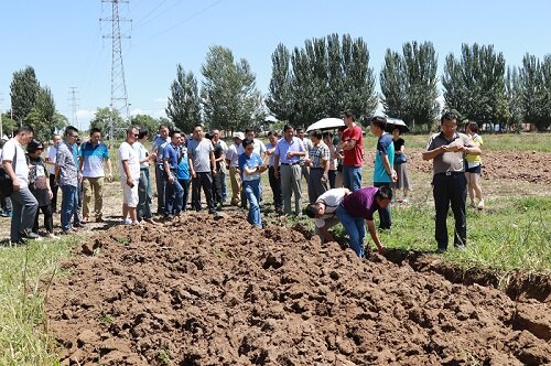 在永宁县玉米籽粒直收农机农艺融合标准化生产示范园区,永宁县农机部门负责人和园区指导专家分别就园区建设情况、园区开展对比试验等情况向参研学员进行了详细介绍,现场为参研学员演示了删条犁田间作业情况,重点介绍了删条犁作业要求和技术要点。