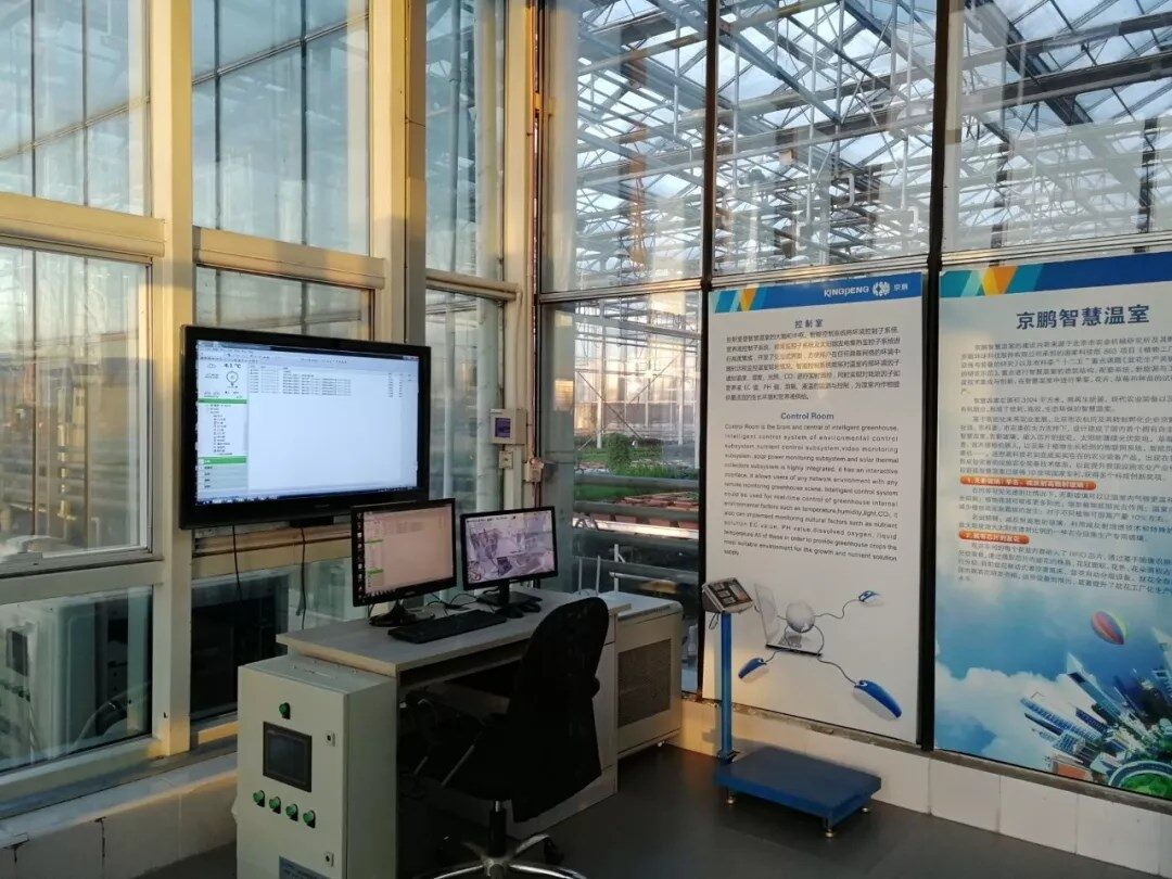 由北京市农业机械化研究所、京鹏环球科技股份有限公司自主创新的“计算机智能控制系统”是整个植物工厂的最大亮点。植物工厂控制室的电脑里记载着工厂各生长单元的环境数据,了解植物“所需”,给予植物“所需”。采用的低能耗、低成本植物生长无线检测系统、内嵌以太网芯片开发的局域网温室环境调控系统,以及作物生长模型的有机结合,实现了植物生长精准可控。而自主研发的营养液循环利用技术设备,提高了营养液的利用率,节水节肥,环境友好,进一步提升了无土栽培技术。