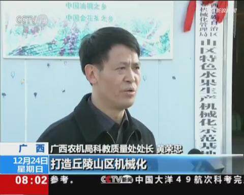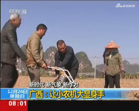 央视网消息:山地、丘陵是农业机械化作业的难点地区,在山地多、丘陵多的广西,农业部门推出一系列新举措,让小农机在农业现代化建设中大展身手。