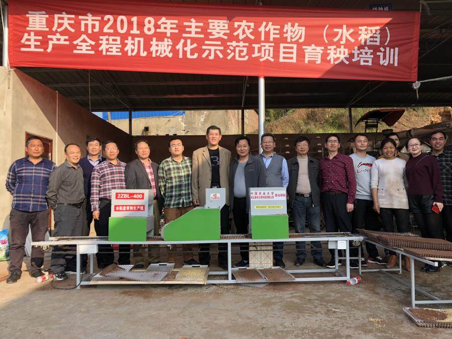 为进一步探索水稻全程机械化优质高产,今年,重庆市农机推广总站从中国农业大学引进了整套水稻钵形毯状苗育秧流水线。中国农大自主研发创建的水稻钵形毯状秧苗机插栽培技术,关键在于钵形毯状育秧盘、配套播种装备、机插机械及育秧基质的设计,使用该设备育秧机插,漏秧率低、伤秧伤根轻、插苗均匀、早生快发性好,增质增效显著,这也是钵形毯状秧苗机插栽培技术在我市的首次推广尝试。3月15日,我市专程邀请了中国农业大学教授王继成亲临垫江县普顺镇平坝农机专业合作社进行育秧现场培训。