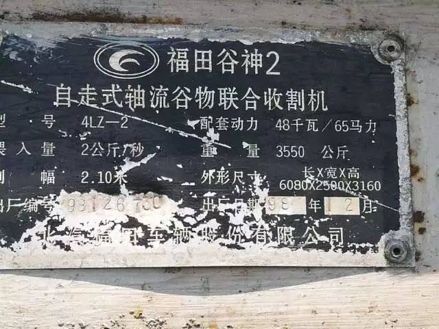 1998年12月购买的雷沃谷神收割机,至今驰骋麦田20载。