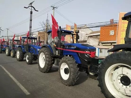 大喜的日子去接新娘,少不了庞大的迎亲车队,然而随着时代的发展,人们的观念也推陈出新,新人们的选择已不再局限于轿车。前几天在陕西渭南椿林乡,一对结婚的新人没有用传统的豪华品牌车当婚车,而是选用一队雷沃欧豹拖拉机作为自己的婚车,这场别样的婚礼刷爆了椿林乡的“朋友圈”。