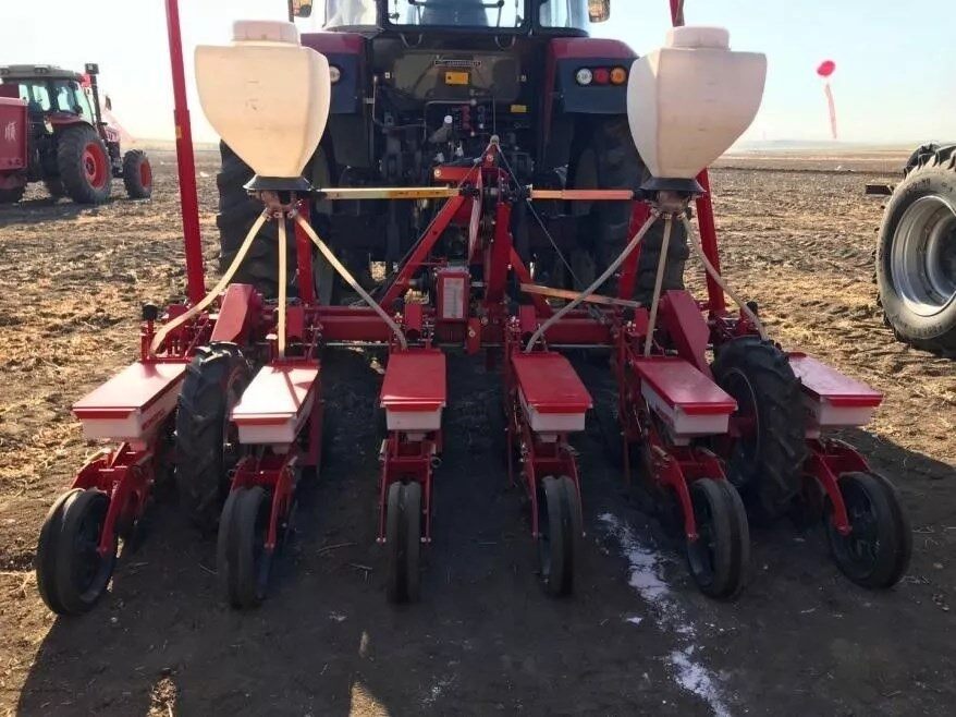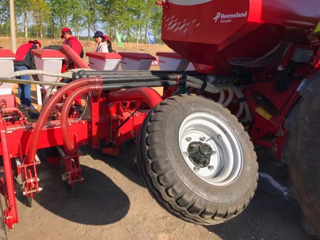 另外一款重载型精量点播机,也是先进、高效的精量点播机。其结构为真空气吸式播种系统,配套动力在180-210马力,播种行数为6、7、8、9、12可选,适用于播种玉米、大豆、甜菜、向日葵、南瓜等精量点播的作物。多地实验证明,其重载型播种机构可适用于各种地况,包括像兴安盟这样土壤复杂,土壤类型和土被结构呈多样性的地区。