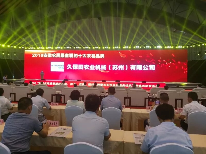 展会期间,同期举办了2018 “ 安徽农民最喜爱的农机、种子、农药、肥料品牌暨农业社会化服务组织 ” 评选活动发布会,久保田获得2018 “ 安徽农民最喜爱的农机品牌 ” 荣誉。