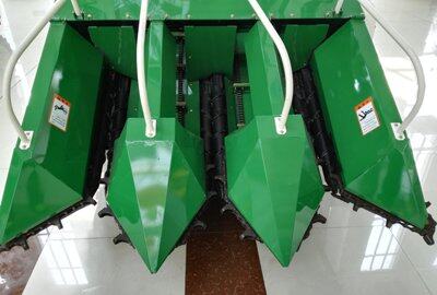 割台采用V型敞开式拨禾链强制喂入结构,收获效果好,可实现不对行收获;