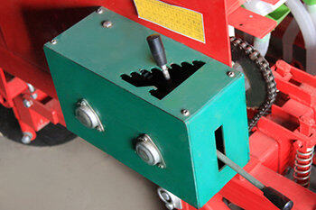 播种盒采用塑料盒,六方轴传动,齿轮式播籽轮交错排种,整盒排种不需调整,播量精准,各行播量一致误差极小,双变速箱分别控制播种量和播肥量,可以随意调整,使用方便。