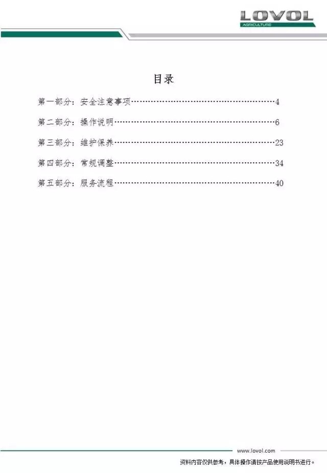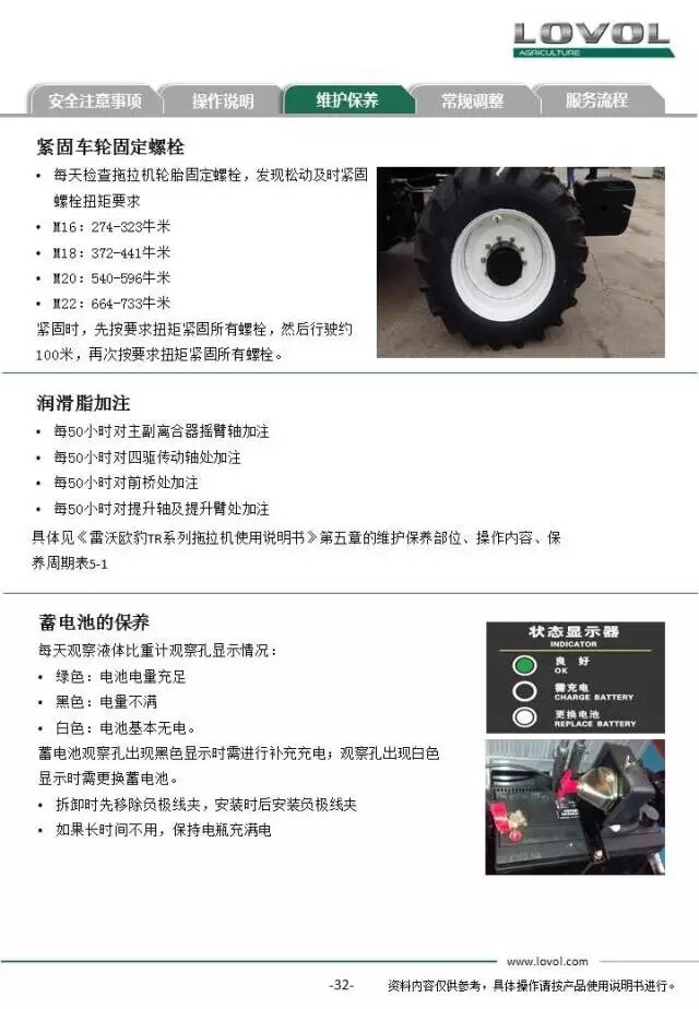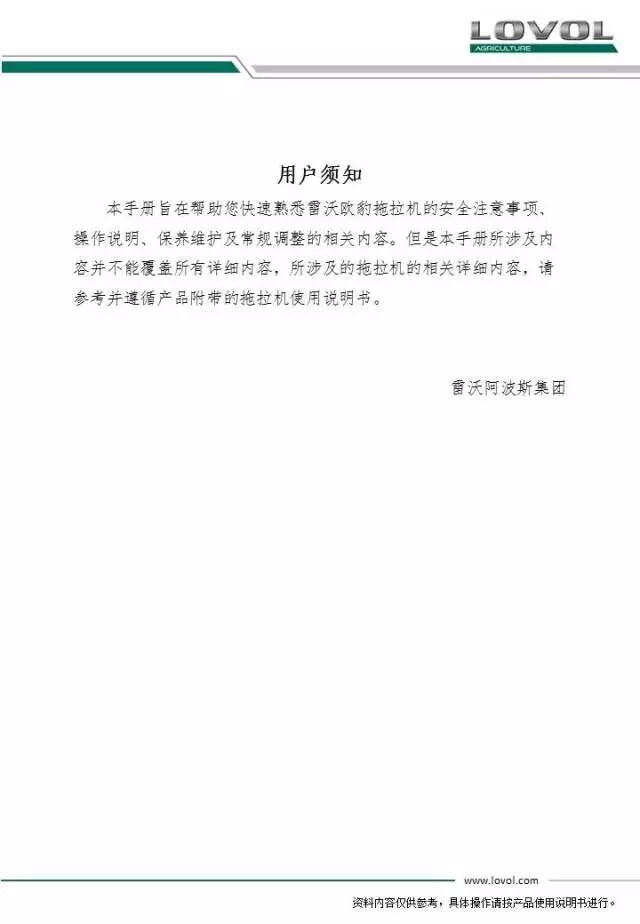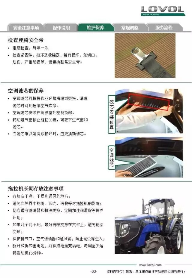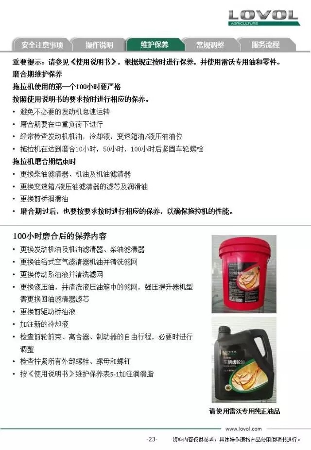 雷沃欧豹TR2104拖拉机交机培训手册