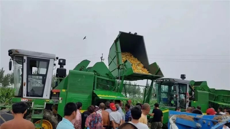8.2018款果穗箱卸粮旋转点高达到2.75米,大大满足了加高车梆运输车的需求。