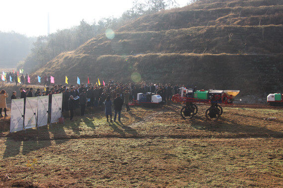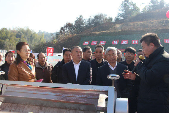 当天,参观人员首先来到栗山镇西山村山坡梯土改造板块,只见超大坡度轨道运输机、深松整地联合作业机、旋耕机、微耕机、开沟机、自走势喷杆喷雾机、多旋翼农用无人机、撒肥机等20余种适宜山地作业的农机具正在改造后的山坡梯土上进行作业演示,现场好不热闹。专业人员为大家详细介绍了山坡梯土改造的意义、技术模式、作用效果及各种农机具的构造、性能、使用方法、保养常识。