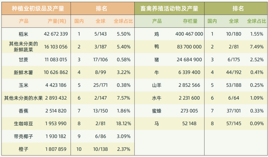 越南种植业和养殖业情况表