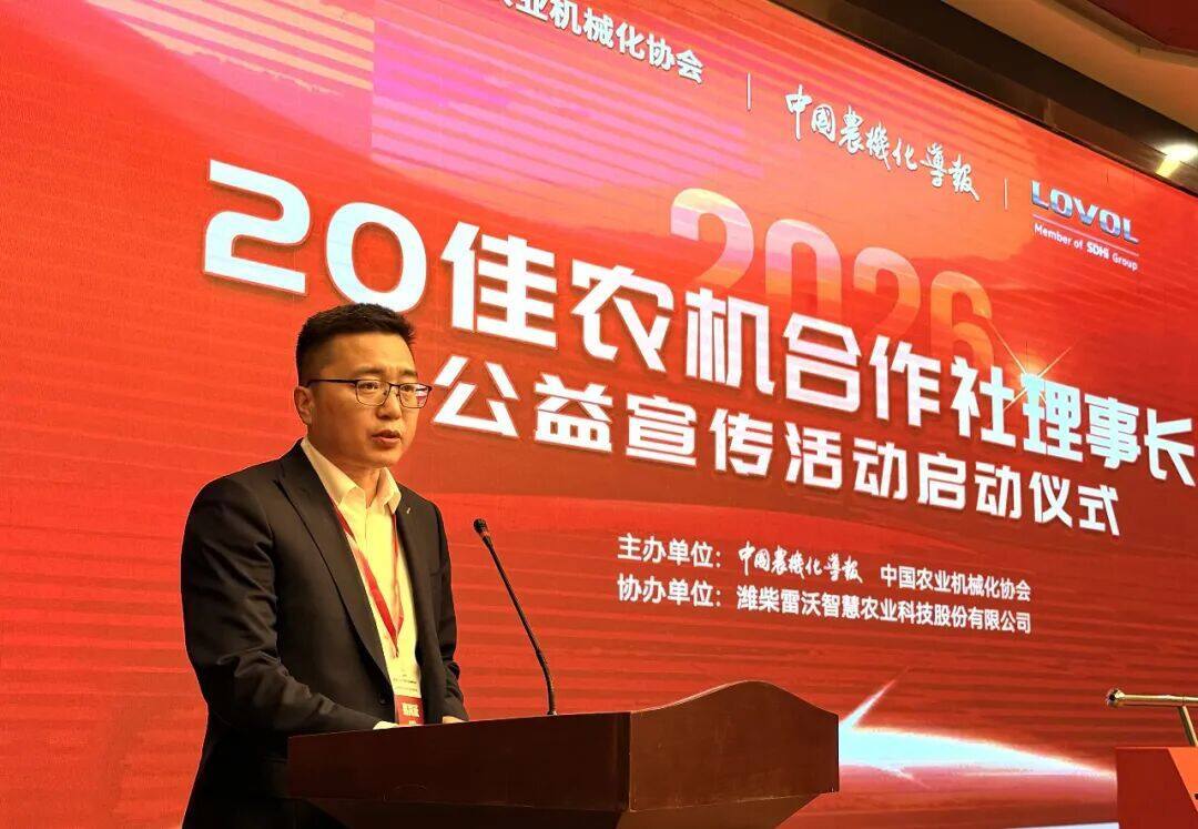 3月27日,在2026全国农业机械展览会期间,由中国农机化导报、中国农机化协会携手潍柴雷沃智慧农业科技股份有限公司(以下简称“潍柴雷沃”)联合主办的“2026年20佳农机合作社理事长公益宣传活动”启动仪式在河南驻马店成功举行。来自行业协会、农机企业、合作社及新闻媒体的代表齐聚一堂,共同见证这一旨在深度挖掘并广泛传播农机合作社理事长的先进事迹与宝贵经验、激励广大农机合作社共同推动农业农村现代化进程的公益品牌活动。