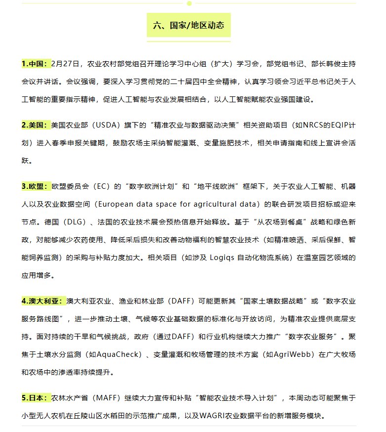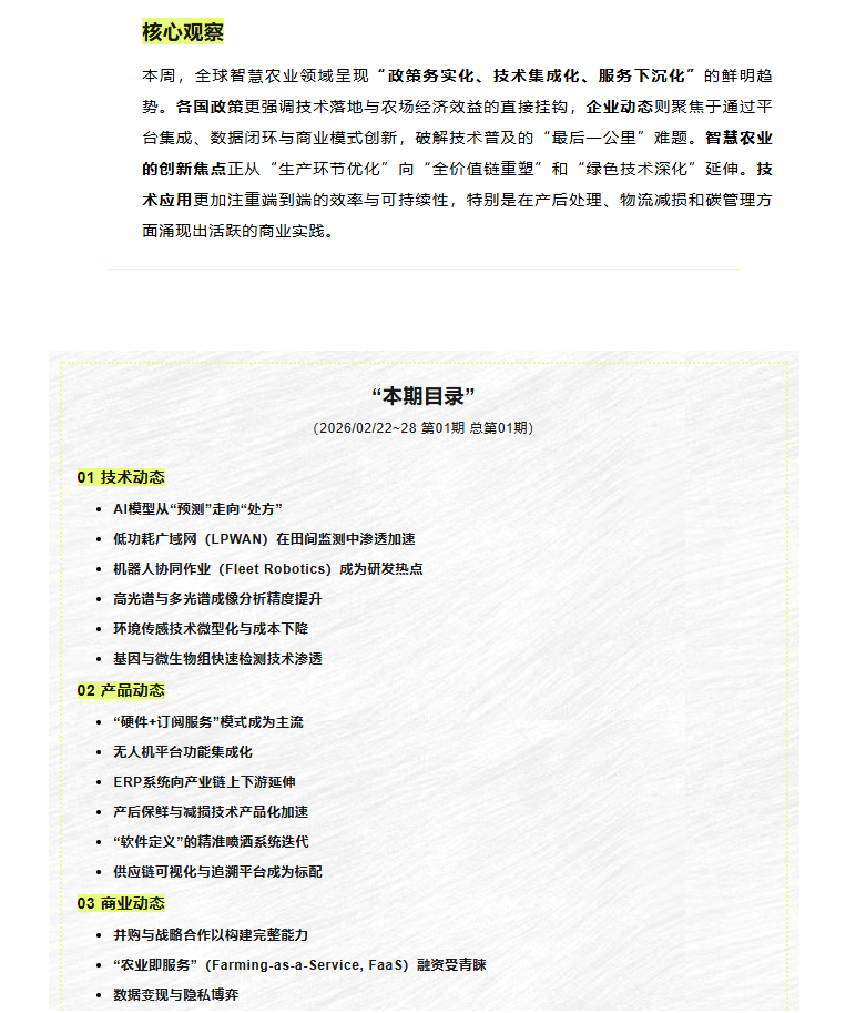 全球智慧农业本周动态 | 全球智慧农业领域呈现“政策务实化、技术集成化、服务下沉化”的鲜明趋势